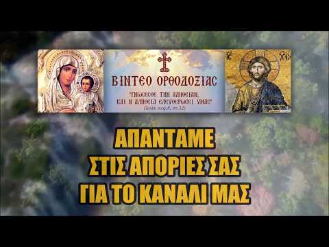 ΑΠΑΝΤΑΜΕ ΣΤΙΣ ΑΠΟΡΙΕΣ ΣΑΣ ΓΙΑ ΤΟ ΚΑΝΑΛΙ ΜΑΣ(Για τους Ορθοδοξους Χριστιανους και Οχι μονον.)Καλιημερα Συνελληνες